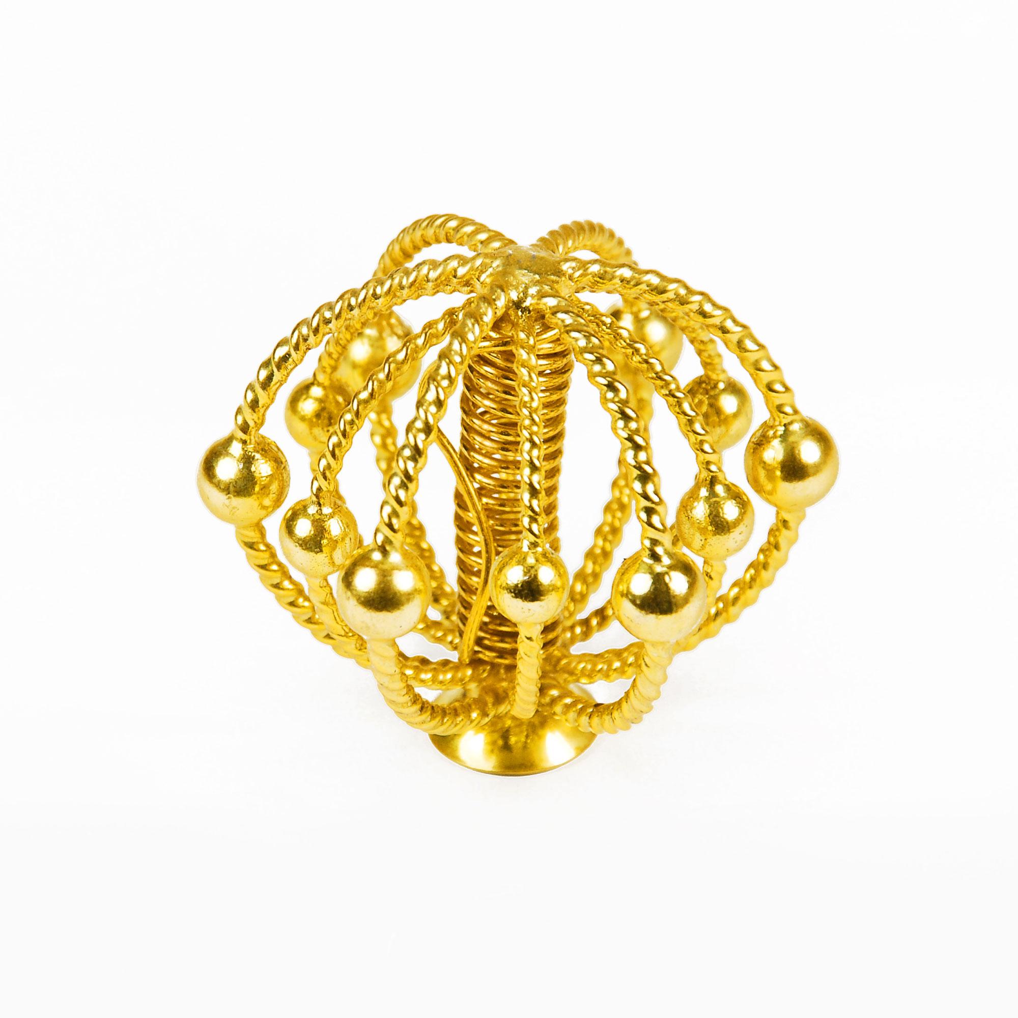 The Matrix 22 Energy Harmonizer, 24K gold plated is roughly the size of a golf ball. It is a combination of six Light-Life Tensor Rings with an Acu-Vac Coil in the middle. The Harmonizer’s base is copper. Eight coatings of silver and 24K gold follow. The layers start with silver and end with 24K gold.