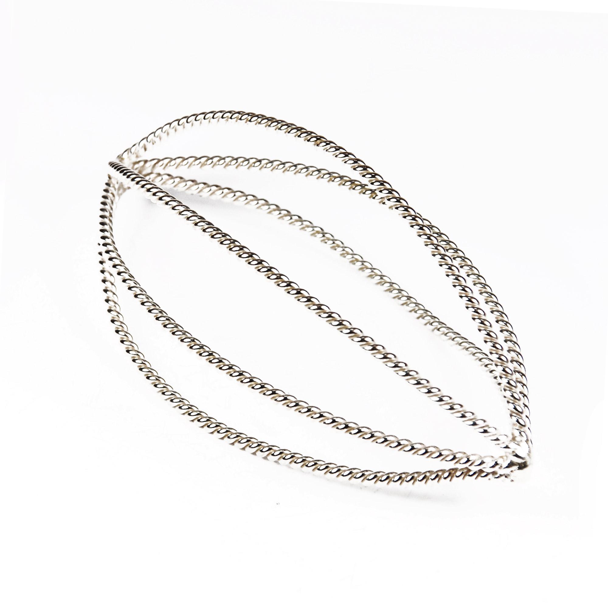 This Nose Mask is made of twisted copper wire. It is then plated with a layer of silver, a layer of 24K gold, and then another layer of silver. It seems to ionize the air breathed in when placed on the face. In our early research, we found that copper puts off negative ions. Breathing through the Nose Mask has been compared to breathing in the cool ocean air.